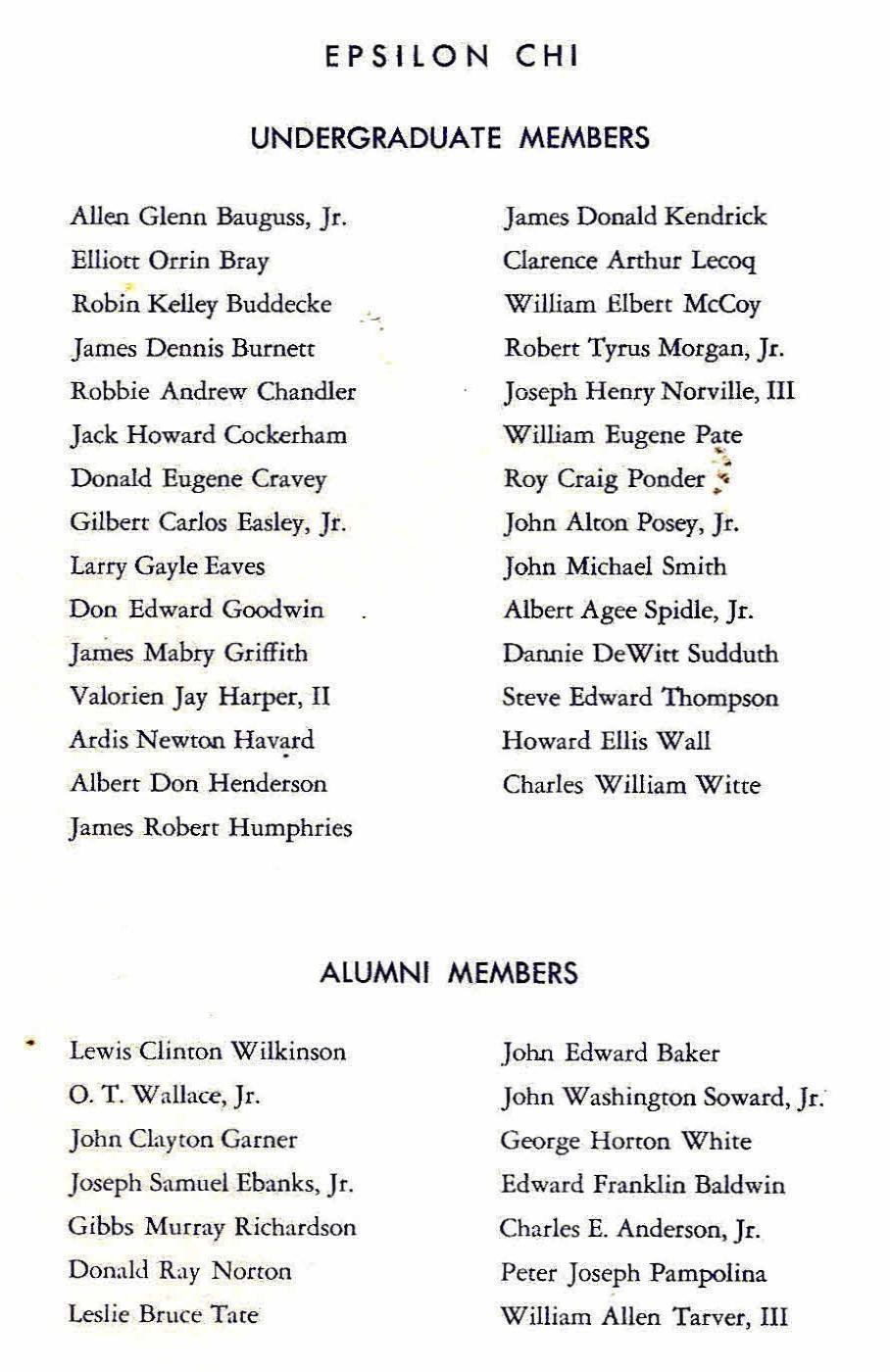 BELOW IS A LIST OF EPSILON CHI INITIATES, FEBRUARY 11, 1961
