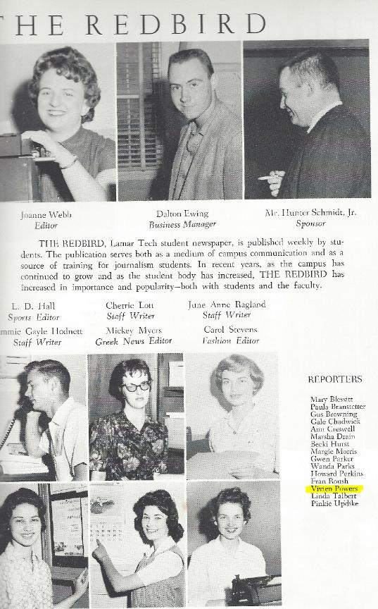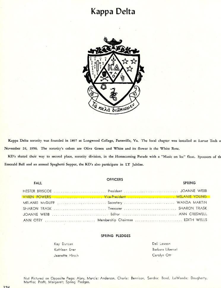 Vivien’s Activities her Lamar Tech Freshman and Sophomore Year 59-61