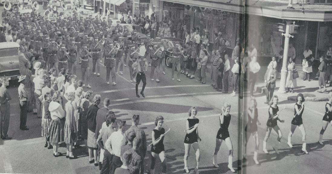 I cannot find her in the picture. Later she was a twirler in the Lamar band. This was the largest member group on campus.