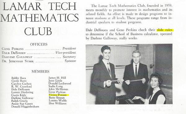 I never knew Viv was in the Math Club and it was started her Freshman year. Note the