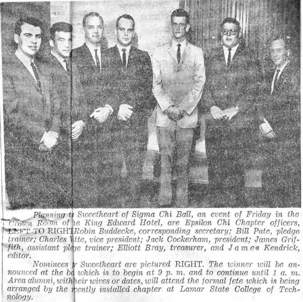 | LAMAR TECH SIGMA CHI HELD THEIR 1ST SWEETHEART BALL IN 1961 AND VIVIEN WAS A SWEETHEART NOMINEE |
