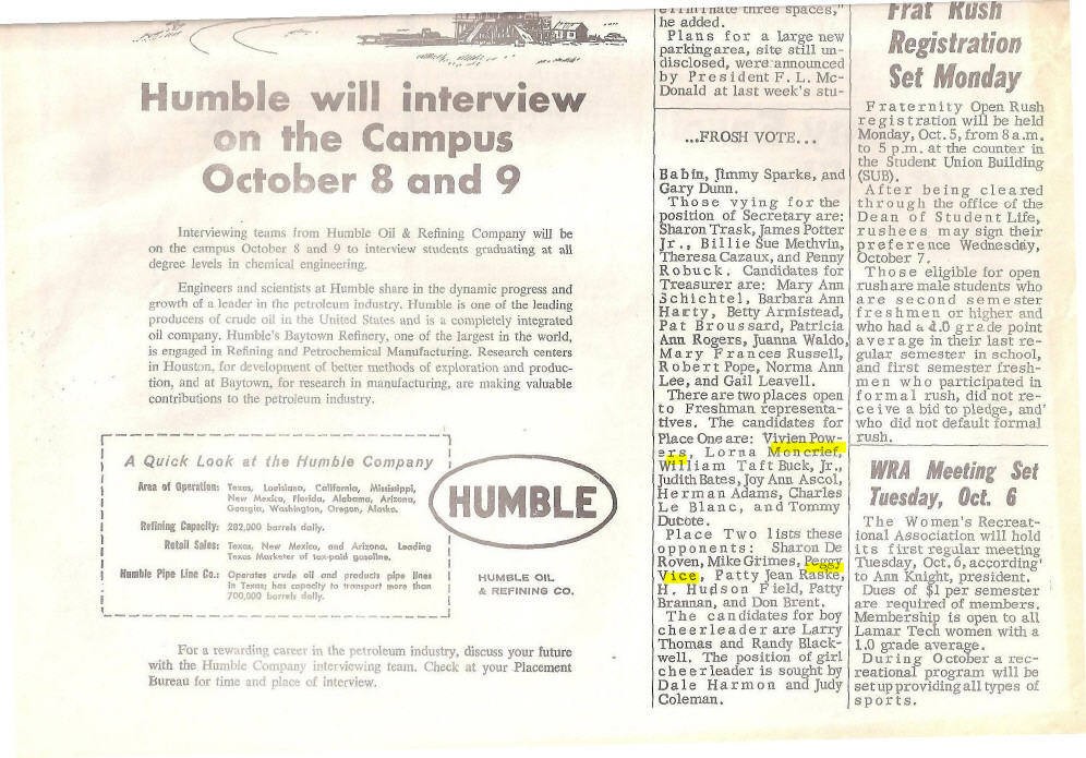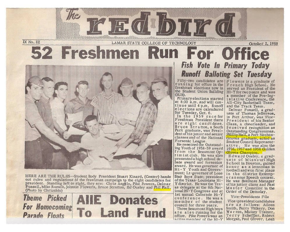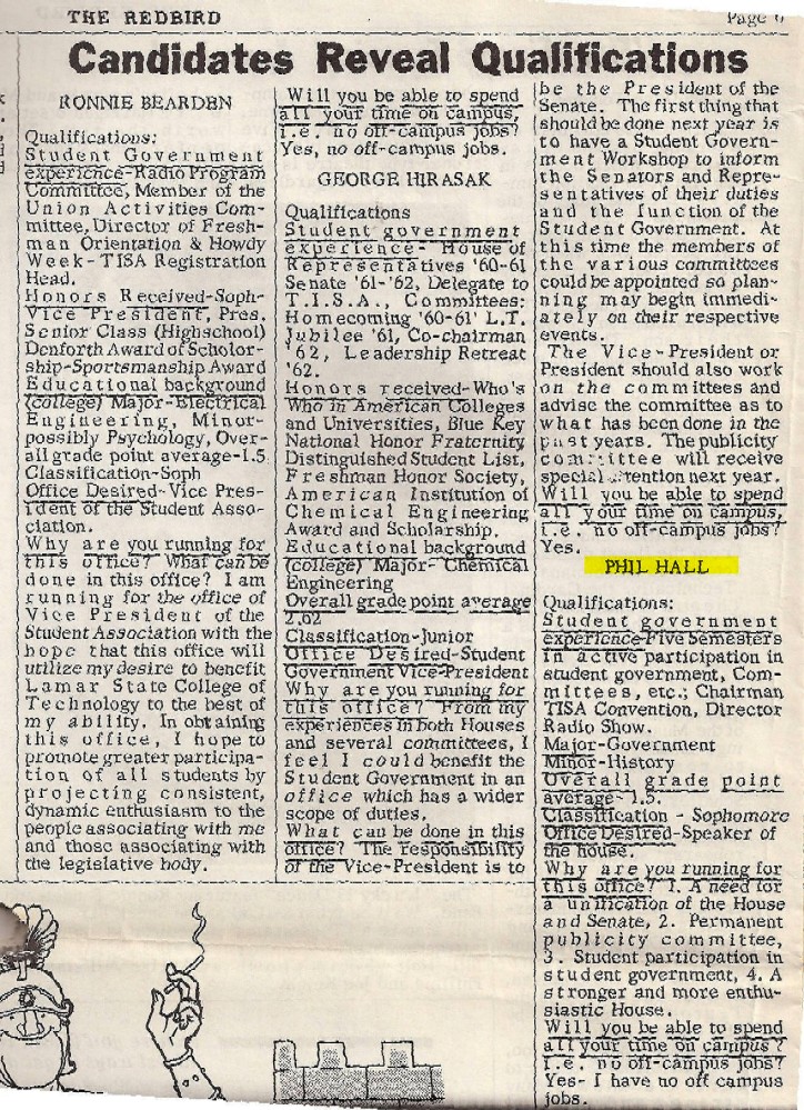 Phil Hall Political Picture PDF file (Freshman Candidates 1959, including Vivien Powers) Taken from The Redbird Lamar Paper